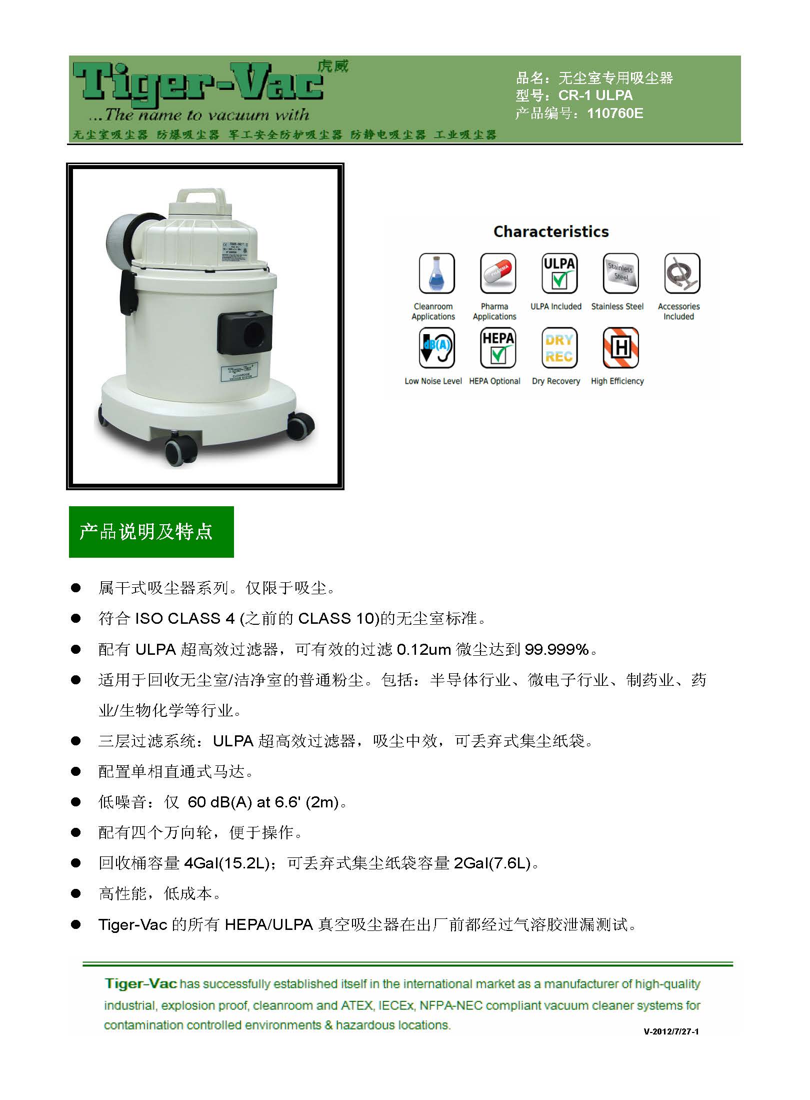 產(chǎn)品名稱: 虎威CR-1無(wú)塵室專用吸塵器