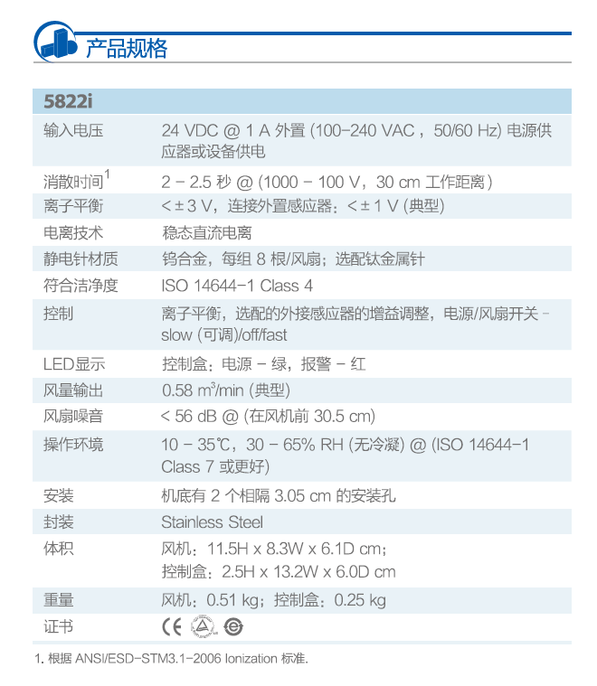 產(chǎn)品名稱: 5822i 離子風(fēng)機(jī)